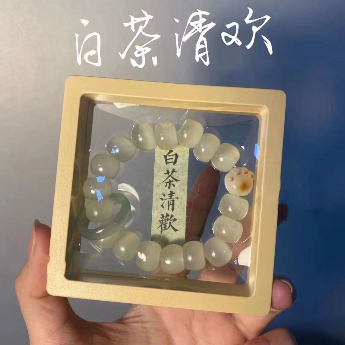 2023 White Tea Qinghuan Imitation Green White Jade Charcoal-Baked Cat Paw Bracelet for Women with Elastic Cord, Ancient Style Lucky Cat Jewelry for Friends