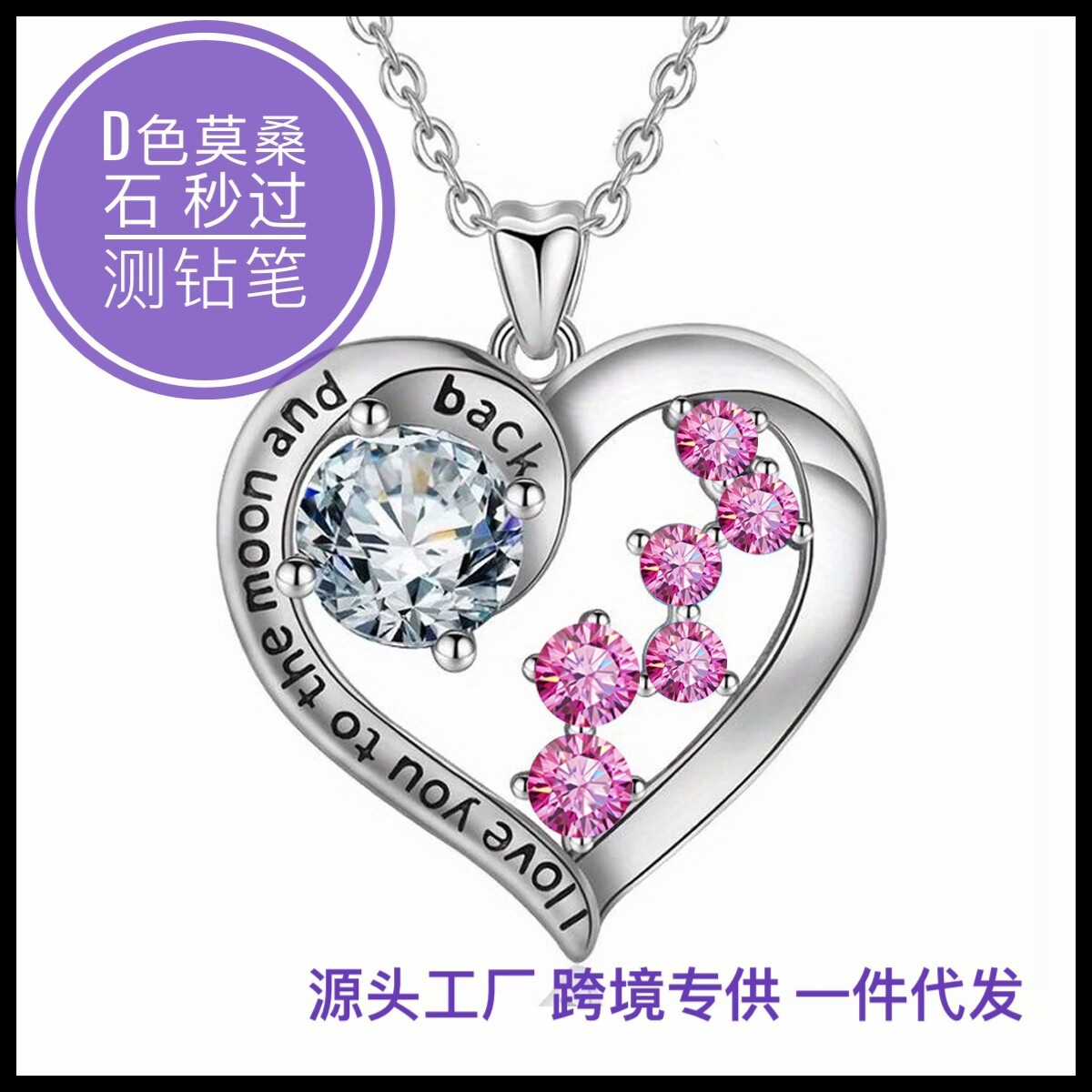 Mita Cross-border Europe, America, Japan and South Korea Best Selling D Color Moissanite Love Necklace S925 Silver Color Pendant Necklace Fashion Women