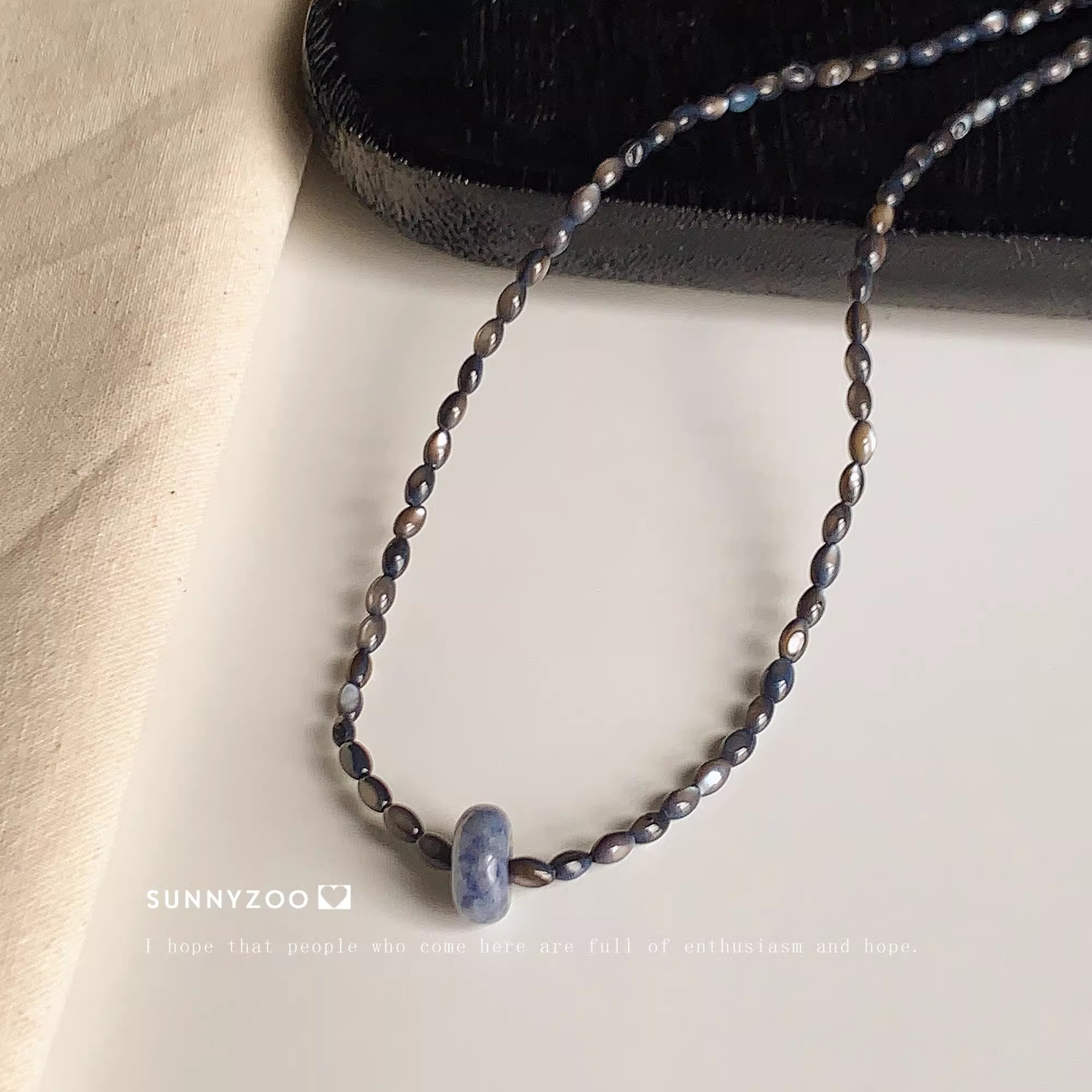 SUNNYZOO | Wuchuan White Tea Japanese and Korean Minimalist Joker Design Necklace Natural Stone Handmade Beaded Clavicle Chain