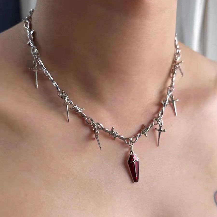 Subculture Spice Girl Gothic Dark Girl Vintage Cross Branch Sword Niche Personality Collarbone Necklace Accessories