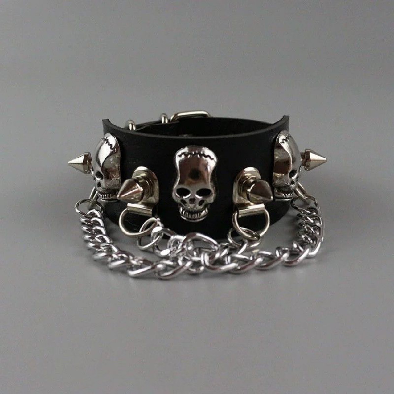 Diablo Skull Rivet Chain Bracelet Heavy Industry Personalized Subculture Bracelet Women's Punk Hip-Hop Bracelet Leather Bracelet Trendy