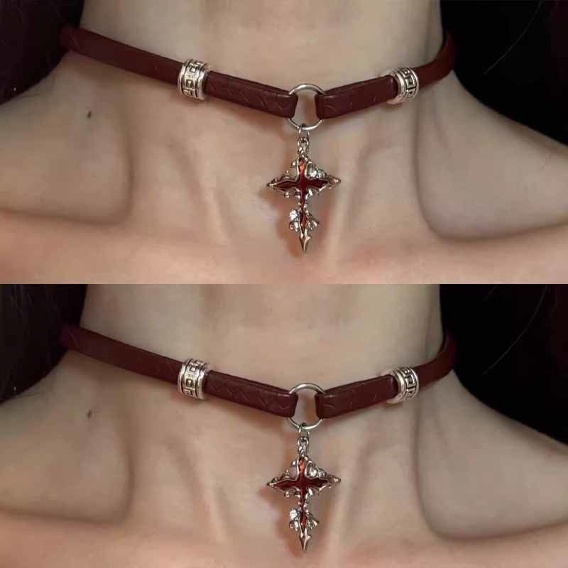 European and American Niche Retro Punk Cross Necklace Women's Cool Joker Choker Collar Subculture Wholesale