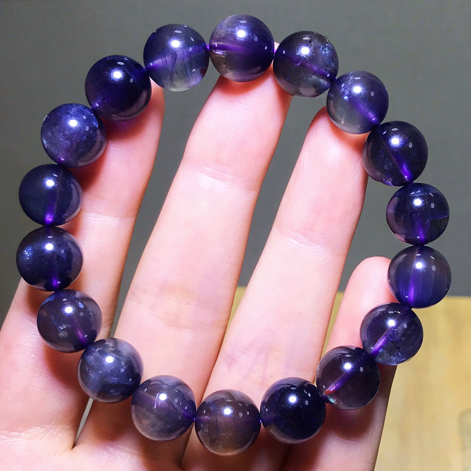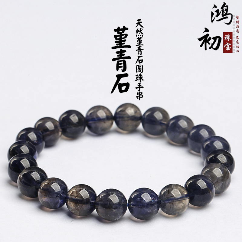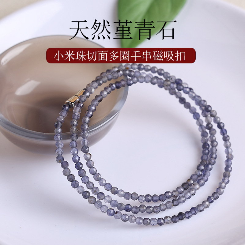 Natural Iolite Old Mine Blue Crystal Bracelet Purple Blue Round Beads Single Circle Sapphire Bracelet Blood Spot Iolite