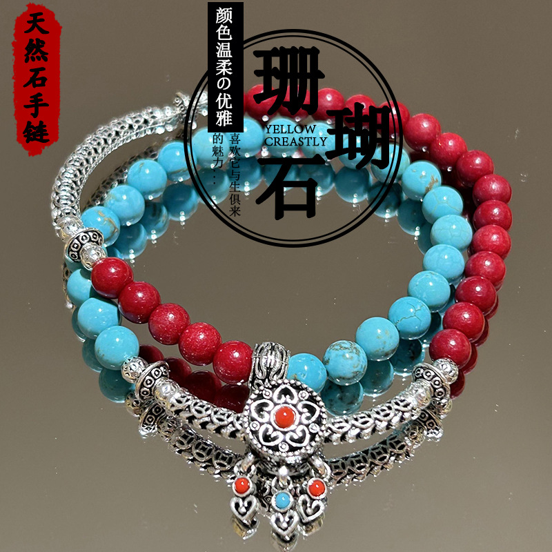 Natural Turquoise Bracelet, Beaded Bracelet, Natural Coral Stone Bracelet, Accessible Luxury and High-End Women's Bracelet
