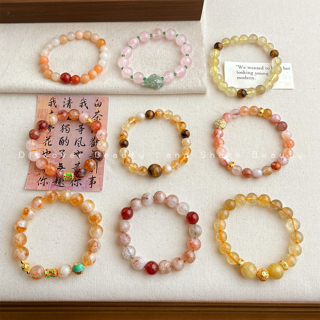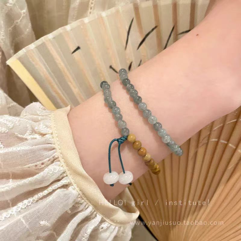 "White Tea Qinghuan" Ancient Style Handmade Natural Stone Bracelet, New Chinoiserie Crystal Bracelet, Literary Retro Elegant Bracelet
