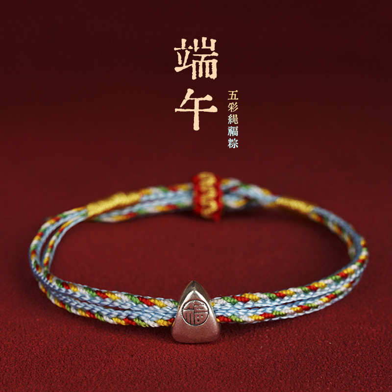 Dragon Boat Festival Colorful Rope Sterling Silver Rice Dumpling Hand-Woven Bracelet Gift Men and Women Bracelet Good Luck Gift Jewelry