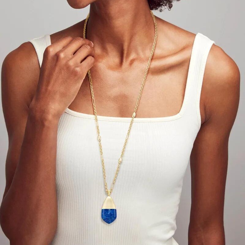 Free Shipping European and American Style Kendra Frieda Pendant dark blue Striped Stone Medium Length Necklace Wool Chain