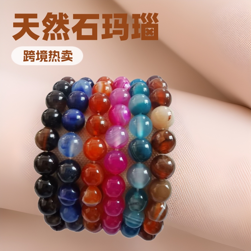 Natural Round Multicolored Striped Stone Bracelet Manufacturer Cross-Border Natural Stone Unisex Jade Handmade