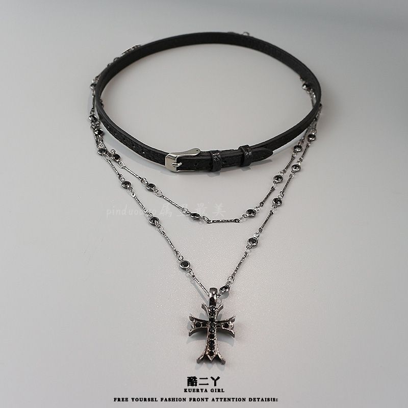 Black Cross Choker Women's Long Stacked Y2K Necklace Women's High-End Clavicle Chain Sexy Sweet and Cool Neck