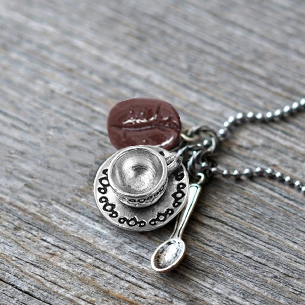 European and American vintage jewelry coffee pendant coffee cup tea teapot necklace long sweater chain coffee bean necklace