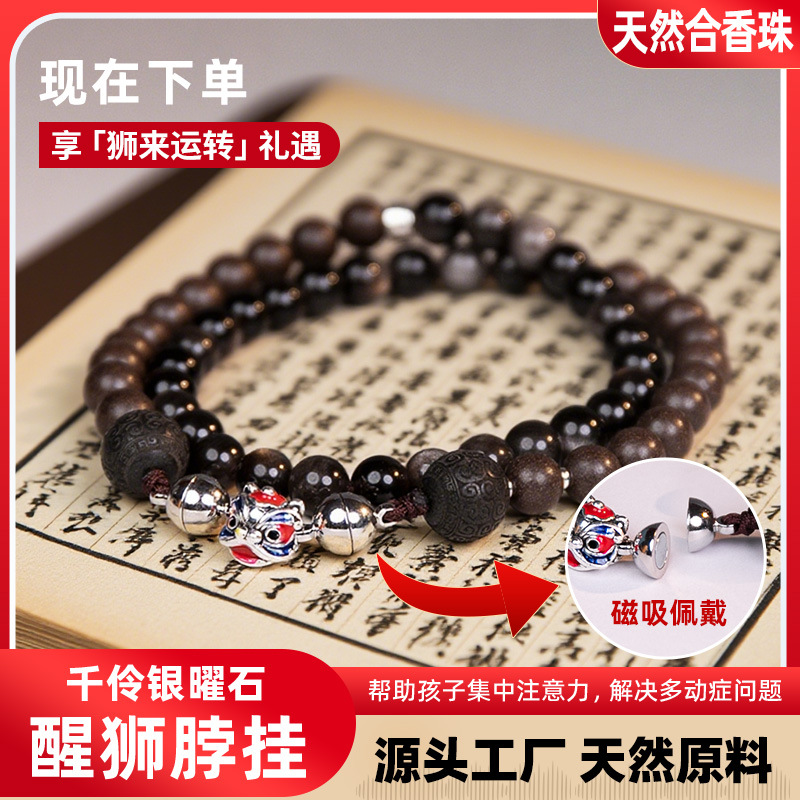 Tiktok Trending Qianlingxiang Fu Lion Ming Rui Chinese Style Design Fortune-Attracting Magnetic Lion Awakening Obsidian Necklace Wholesale