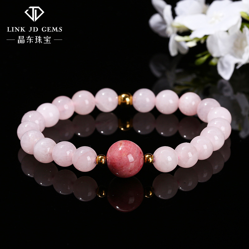 Jingdong Jewelry Pink Crystal Spelling Red Wood Stone Top Bead Bracelet Sweet Wind Girl Girlfriend Gift Bracelet Wholesale