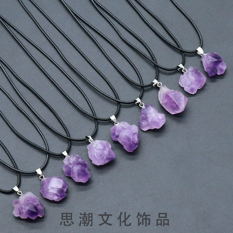 Amethyst stone natural stone necklace Amethyst irregular pendant clavicle chain women's small jewelry wholesale