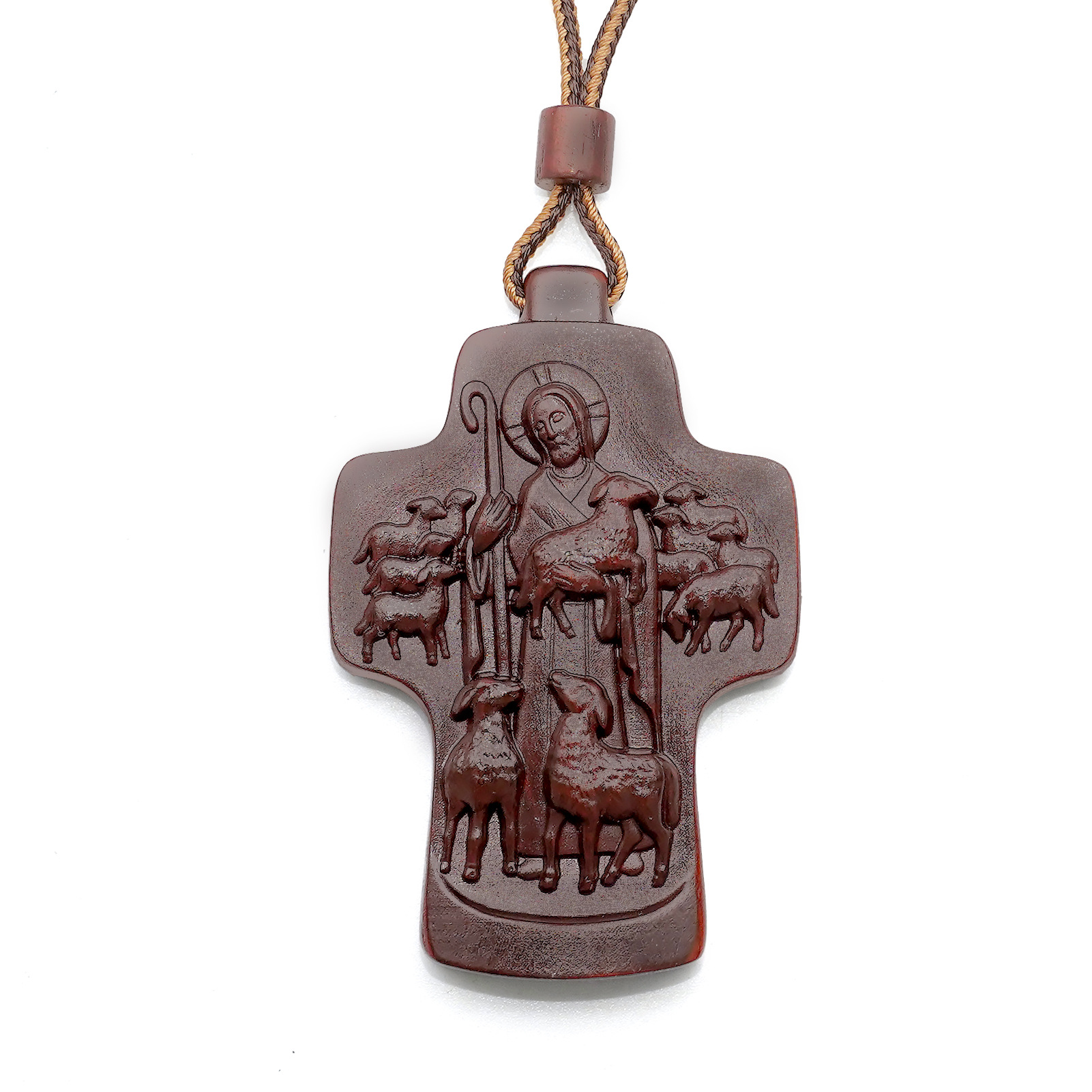 Necklace with Cross, Good Shepherd, Sandalwood, Olive Wood, with Cord, 7X5Cm, Unisex, Aliexpress Cross-Border, Good Shepherd Relief Carving