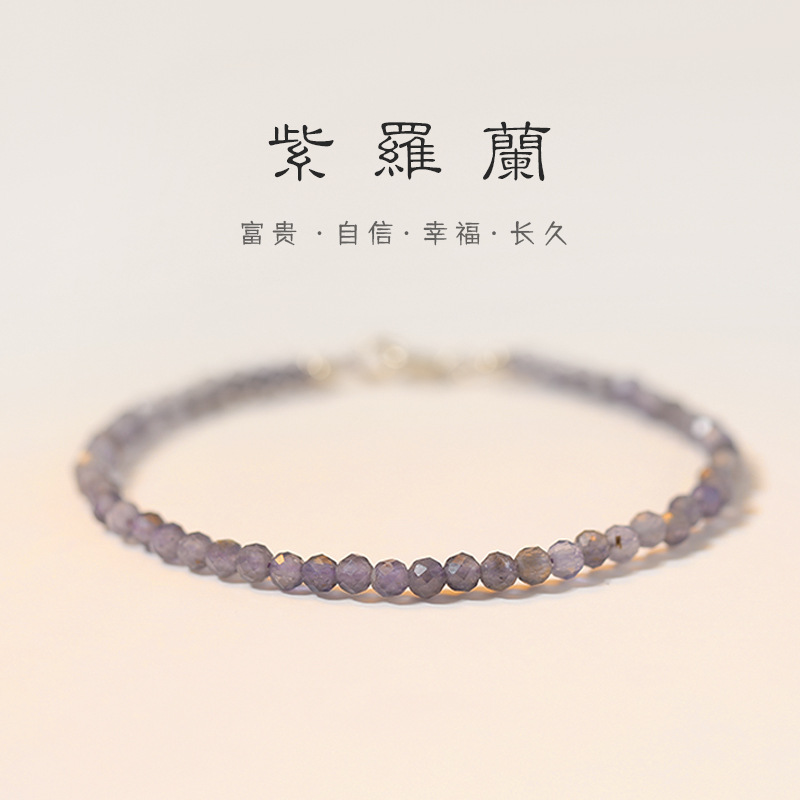 Badu Natural Cordierite Bracelet for Women 3mm Round Beads Faceted Beads Cordierite Ultra-Fine Crystal Bracelet Retro Hand Jewelry