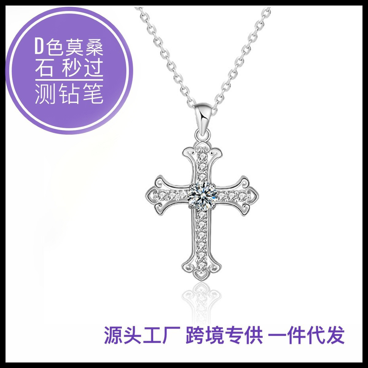 Mita Cross-Border Hot-Selling 925 Sterling Silver Moissanite Necklace Women's European and American Cross Pendant Clavicle Neck Sweater Chain