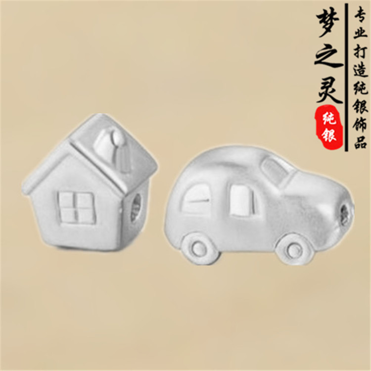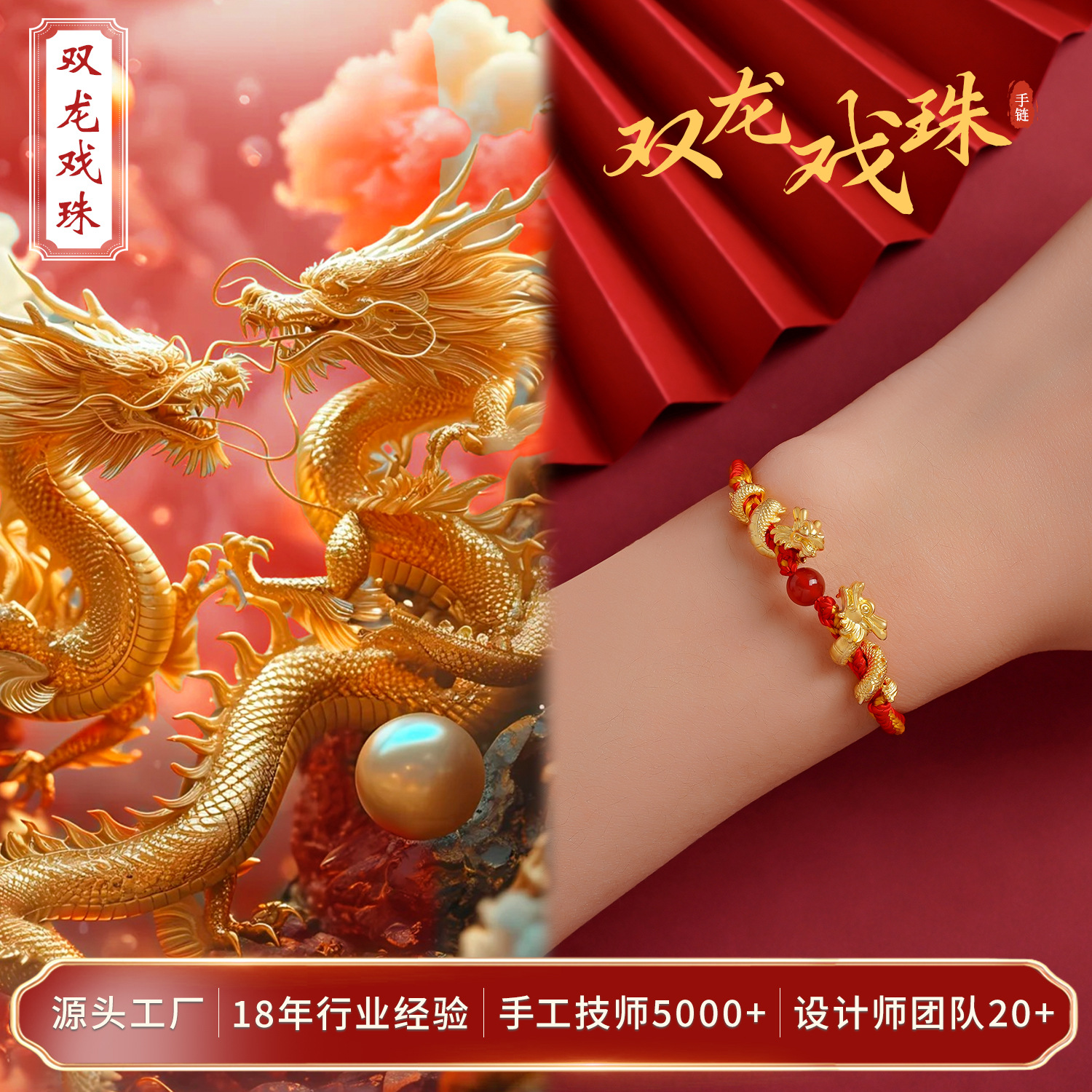 S999 Pure Silver 3D Hard Silver Bracelet New Chinoiserie Creative Accessories Wholesale Hand Decoration Red Rope Beaded Necklace