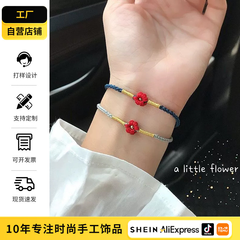 Cross-Border Hand-Woven Bracelet Yi Yangqianxi Same Style DIY Small Red Flower Lucky Red Rope National Trend Transfer Bracelet