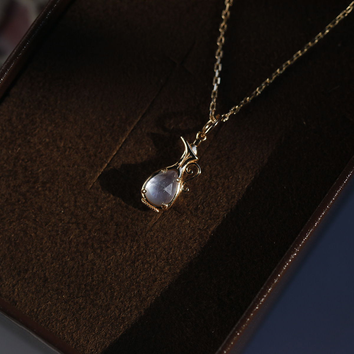 Huangjin Japanese Style Agete Retro Luminous Wine Bottle Double-Sided Pendant 925 Sterling Silver Gold-Plated Natural Cordierite Necklace