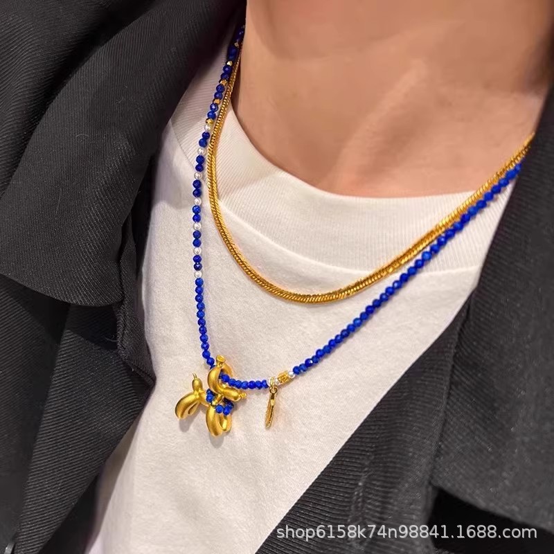 Gold Balloon Dog Necklace Lapis Lazuli Women's 2025 New Hot Style Niche Design Cartoon Pendant for Girlfriend