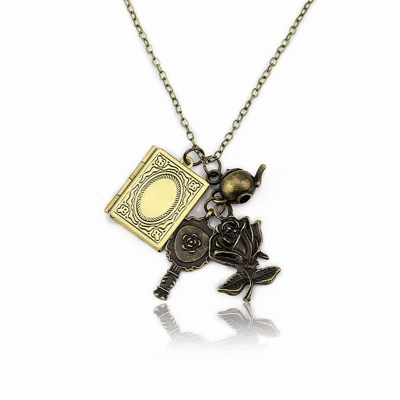 European and American Film and Television Surrounding Beauty and Beast Rose Magic Mirror Teapot Magic Book Retro Women's Necklace Sweater Chain