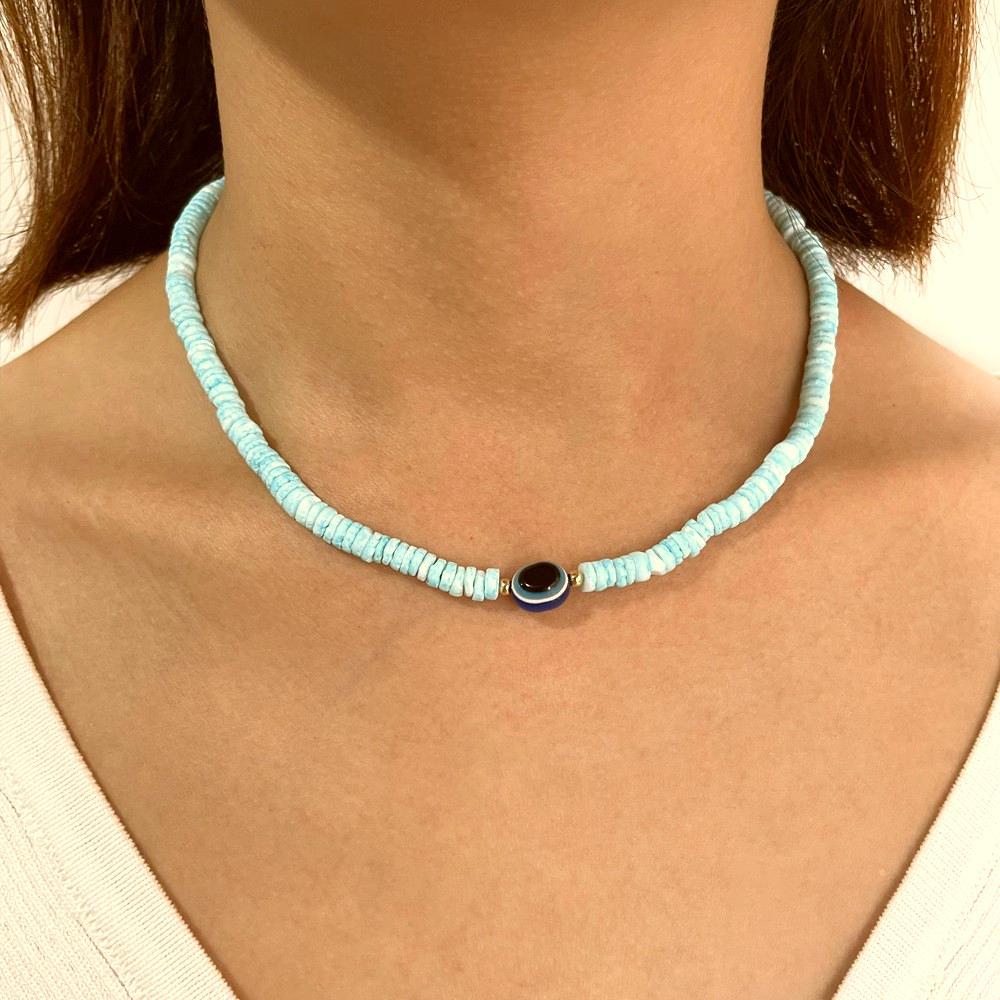 Cross-Border European and American Personalized Creative Coral Stone Necklace Devil's Eye Beaded Bracelet for Women Retro