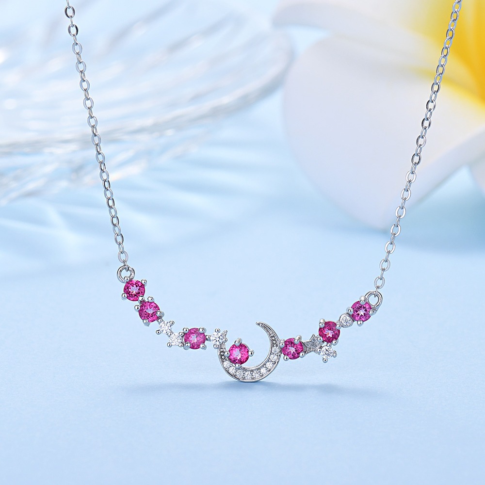Xingyue small fresh necklace s925 silver inlaid pink Topaz Emerald cordierite multi-treasure clavicle chain color treasure