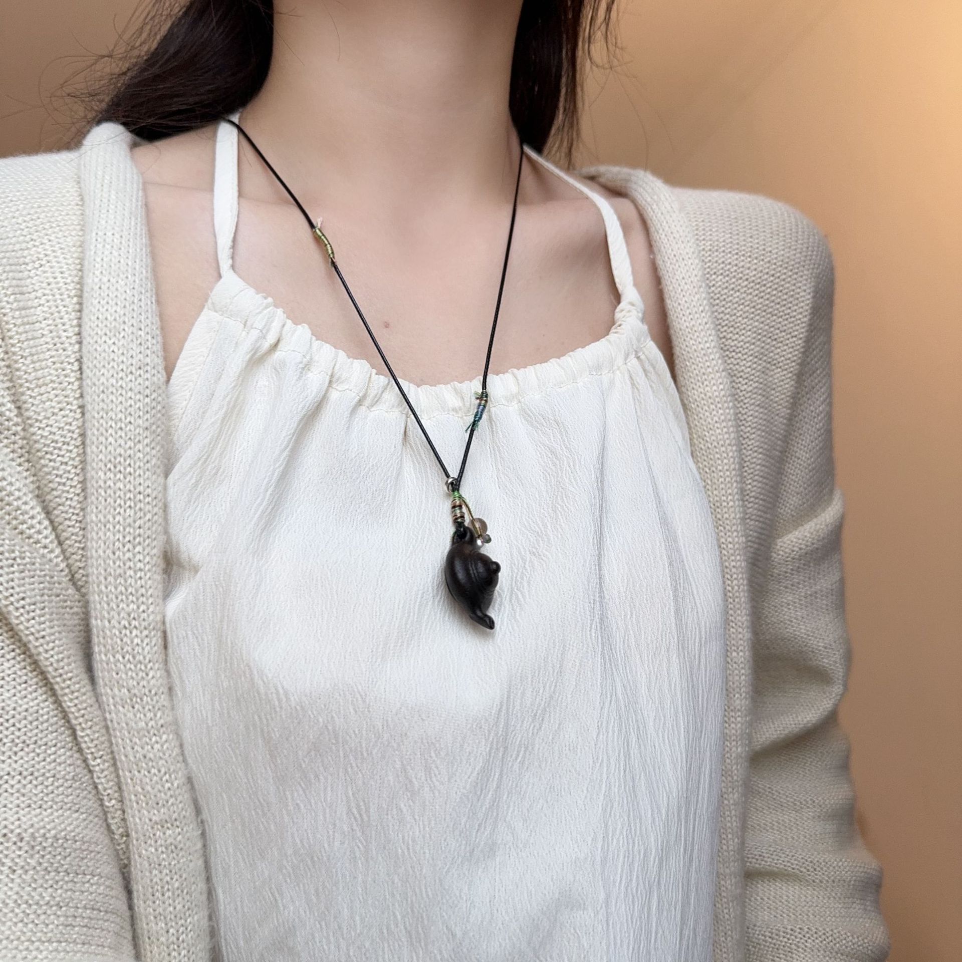 New Chinese Style Cryable Wooden Teapot Pendant Necklace Women's Retro Design Long Accessories Sweater Chain Clavicle Chain