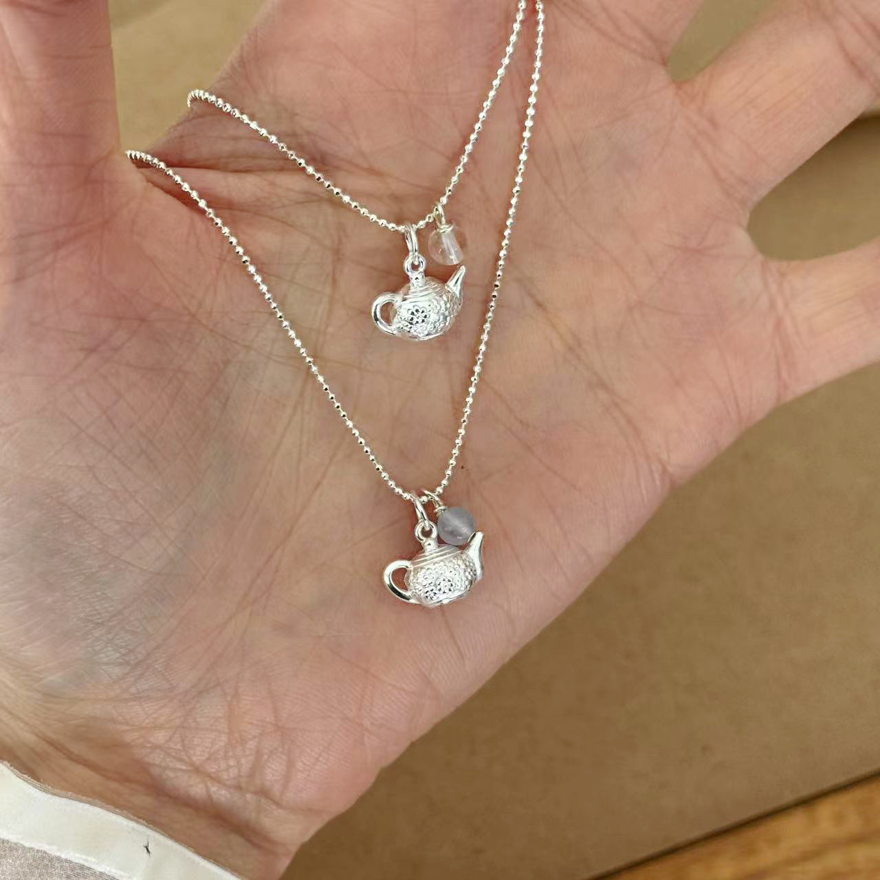 Yinsen S925 Silver Teapot Pendant Necklace Retro New Chinese High-end Simple Korean Niche Ins Stacked Collarbone Chain