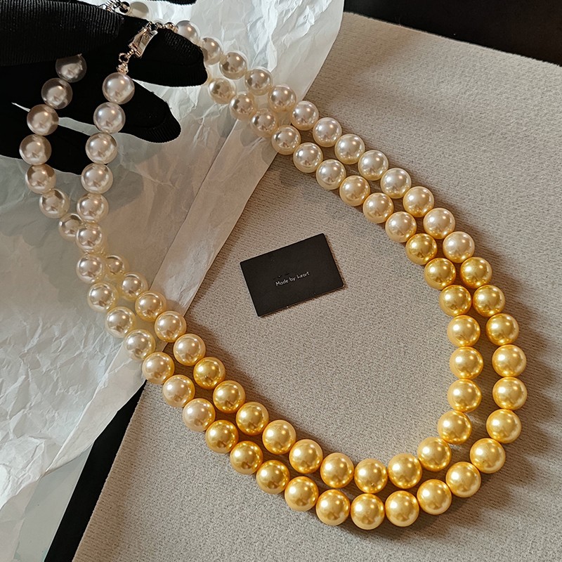 S925 Sterling Silver Buckle Shijia Ao White Tea Gold Gradient Pearl Necklace Women's Sweater Light Luxury High-end Beaded Neck Chain