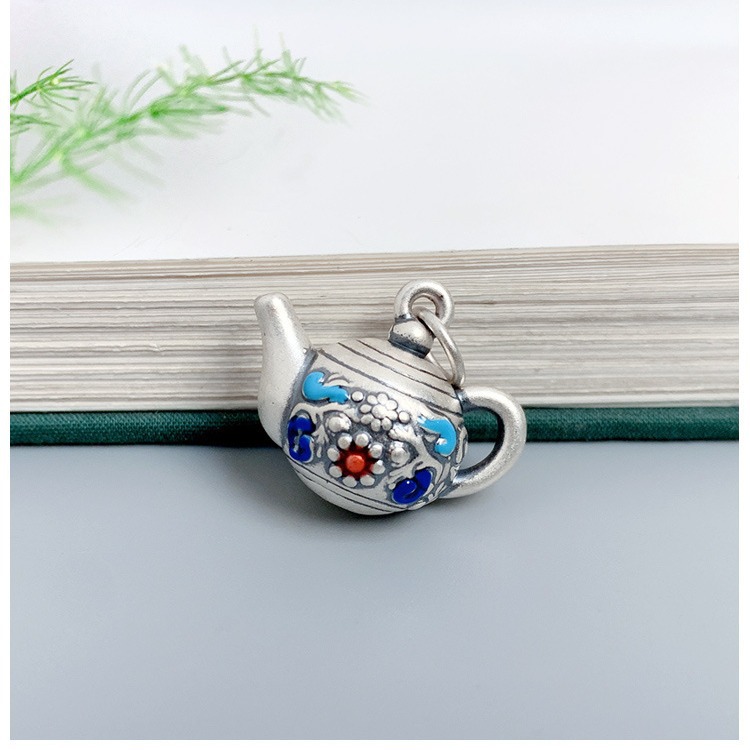 Teapot Pendant Necklace Clavicle Men and Women Retro Handle Hu Water Kettle Pendant Burnt Blue Craft Personalized Accessories