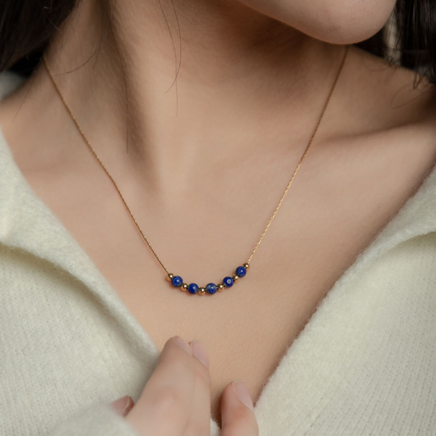 Five Round Beads Sweet Fashion Temperament Pomegranate Bluestone Necklace Versatile Clavicle Chain Necklace