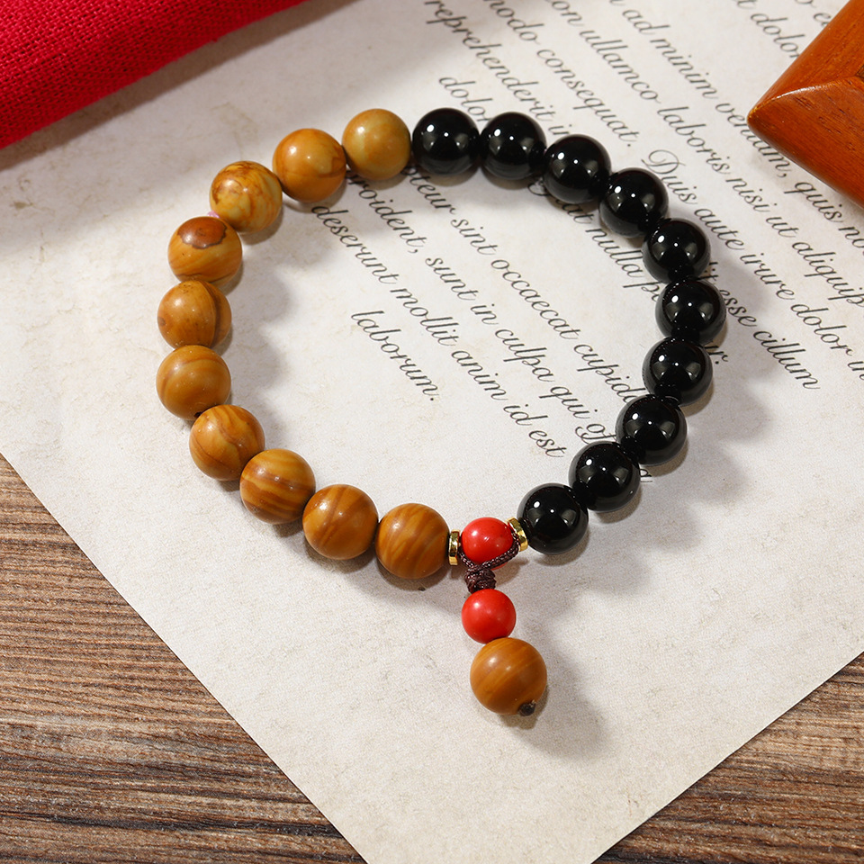 New Chinese Style Meditation Bracelet Natural Black Onyx Bracelet Buddha Bead Wood Stone Gift Peace Bracelet