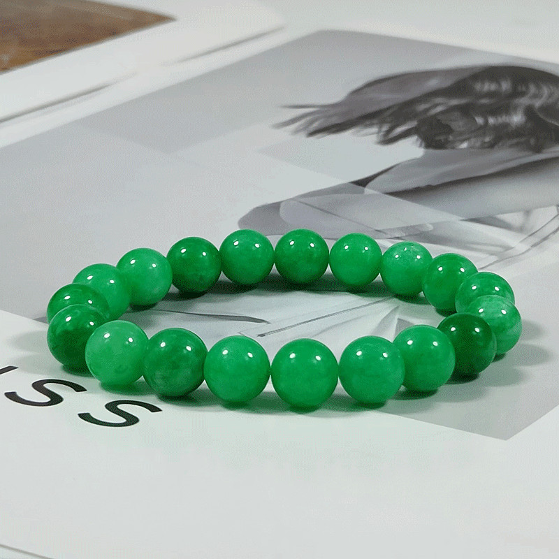 European and American cross-border dry bluestone cold jade bracelet round beads Jasper bracelet men's and women's elegant green jade bracelet source direct supply