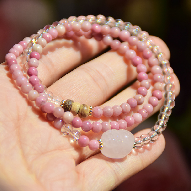 New Chinese Style Natural Wood Grain Stone Bracelet Rose Quartz Pixiu Multi-Circle High-End Crystal Bracelet Cultural and Creative Jewelry Wholesale