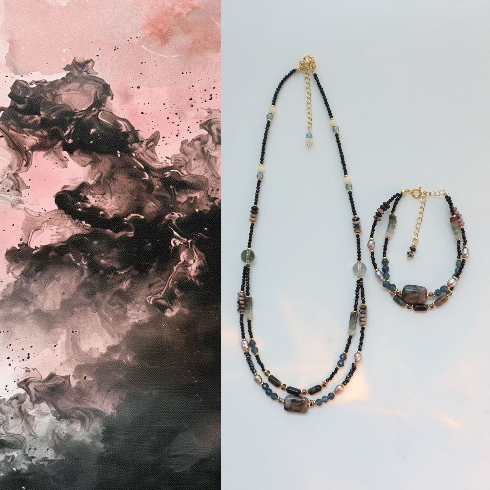 Chinoiserie Natural Freshwater Purple Pearl Necklace Accessories Double Layer Bracelet Cordierite Chinoiserie Necklace Handmade Jewelry