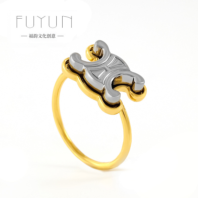 Light Luxury Ring Women's ins Saijia Color Collecting Ring Inlaid Arc de Triomphe Ring Europe and America Cross-border Export Ring Wholesale