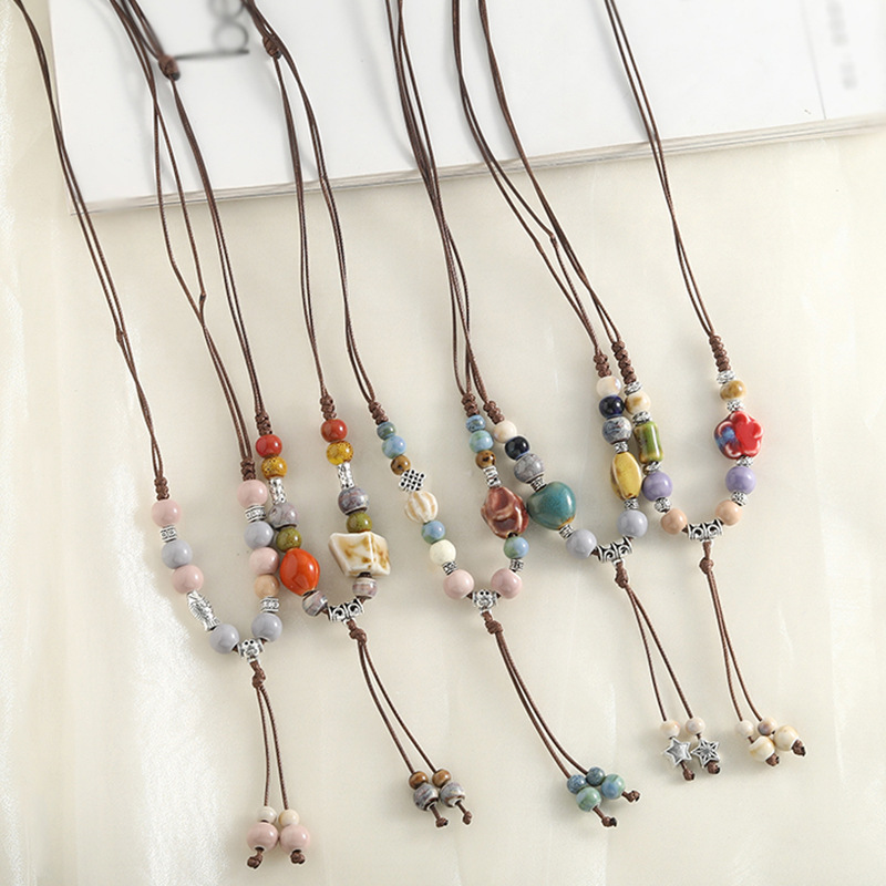 Bohemian Retro Ceramic Beaded Necklace Colorful Pendant Simple Versatile Niche Sweater Chain Long Ethnic Style
