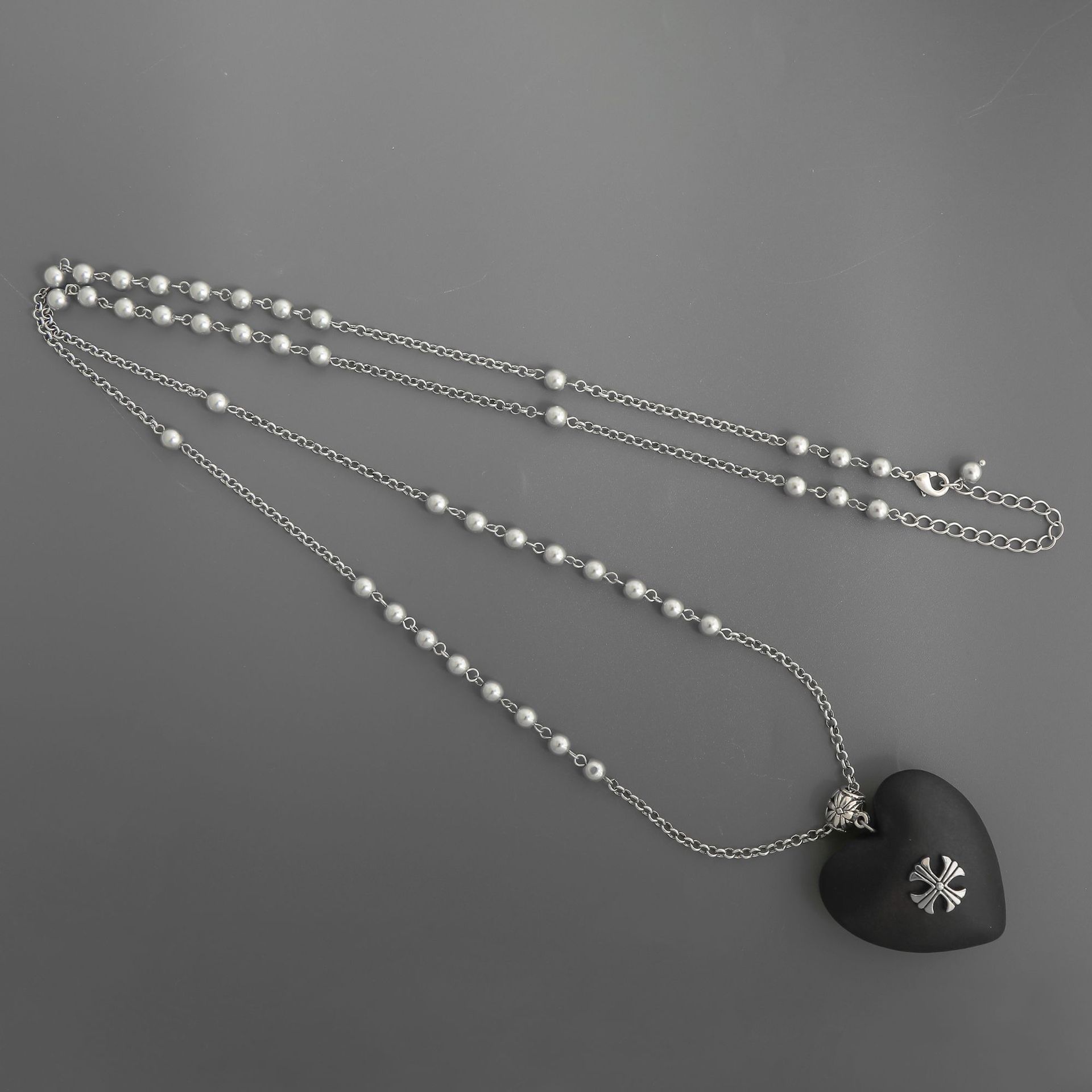 Star with cross love necklace classic retro sweet cool personality wood pearl three-dimensional love long necklace