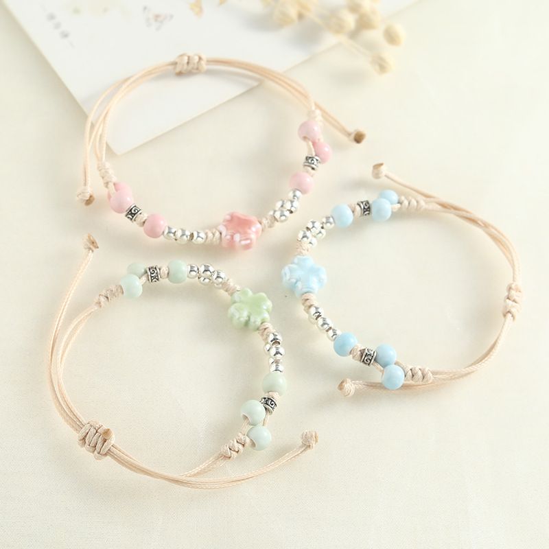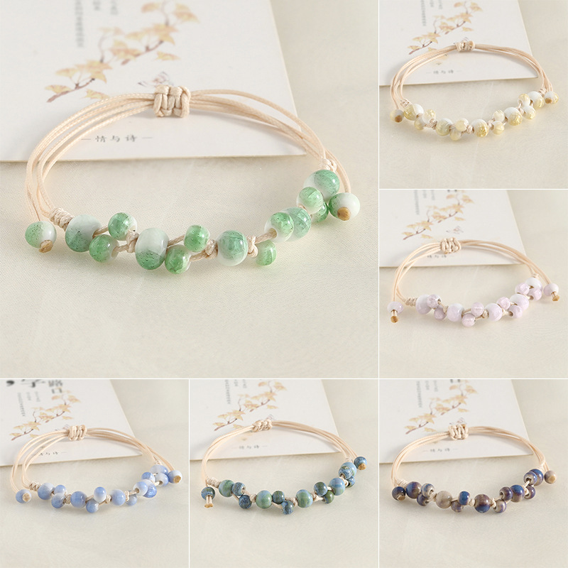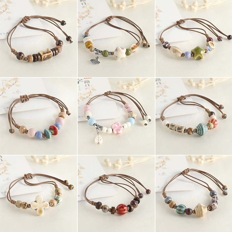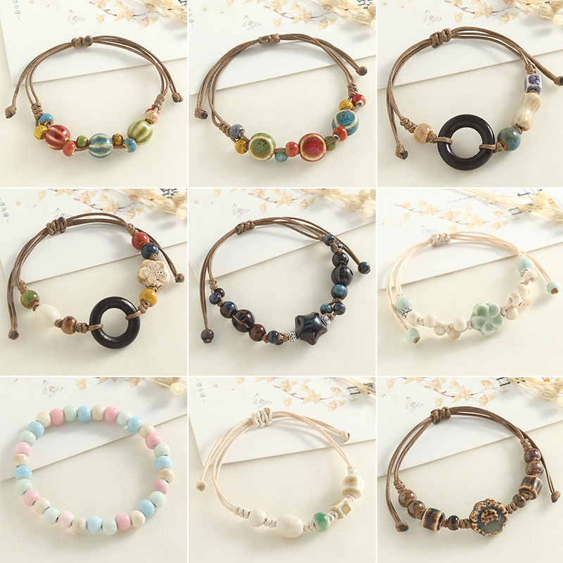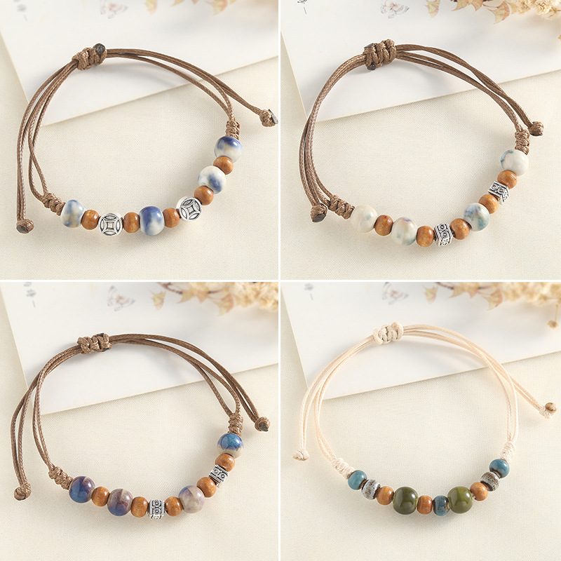 Retro Chinese Style Ceramic Bracelet, Hand-Woven Bracelet, Cross-Border Jingdezhen Jewelry, Beaded Bracelet, Simple and Versatile