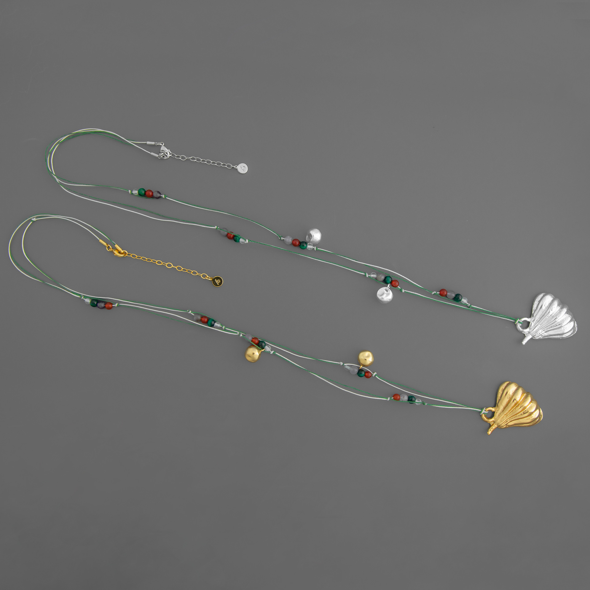 Ate* Home Textured Pumpkin Necklace New Niche Design Retro High-Quality Agate Beaded Long Clavicle Chain
