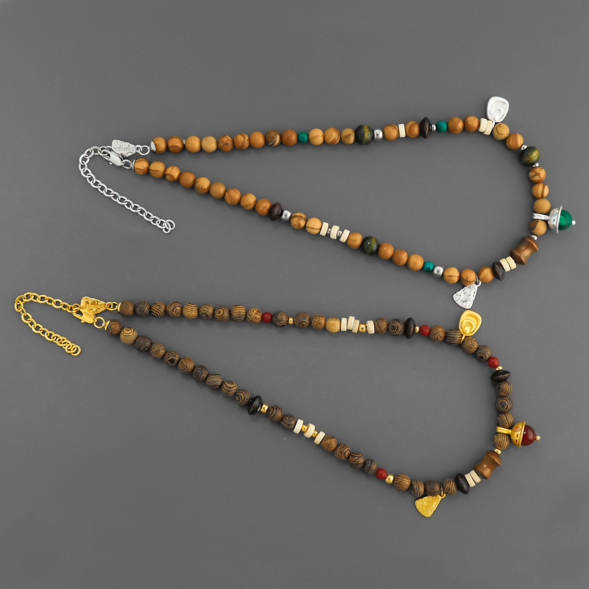 Swa* Home Hill Hazelnut Beaded Necklace New Niche Design Retro High-Quality Wooden Beads Natural Stone Clavicle Chain