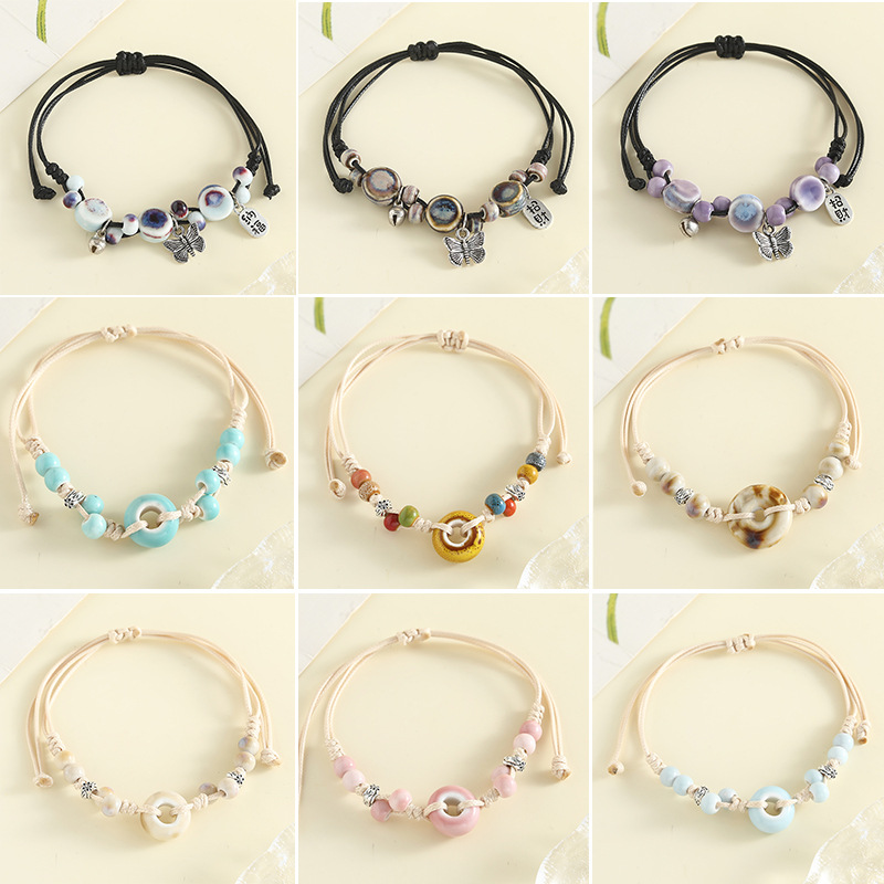 Niche Butterfly Ceramic Beaded Braided Bracelet for Girls Retro New Chinese Style Ceramic Bracelet Wholesale Stall Jewelry