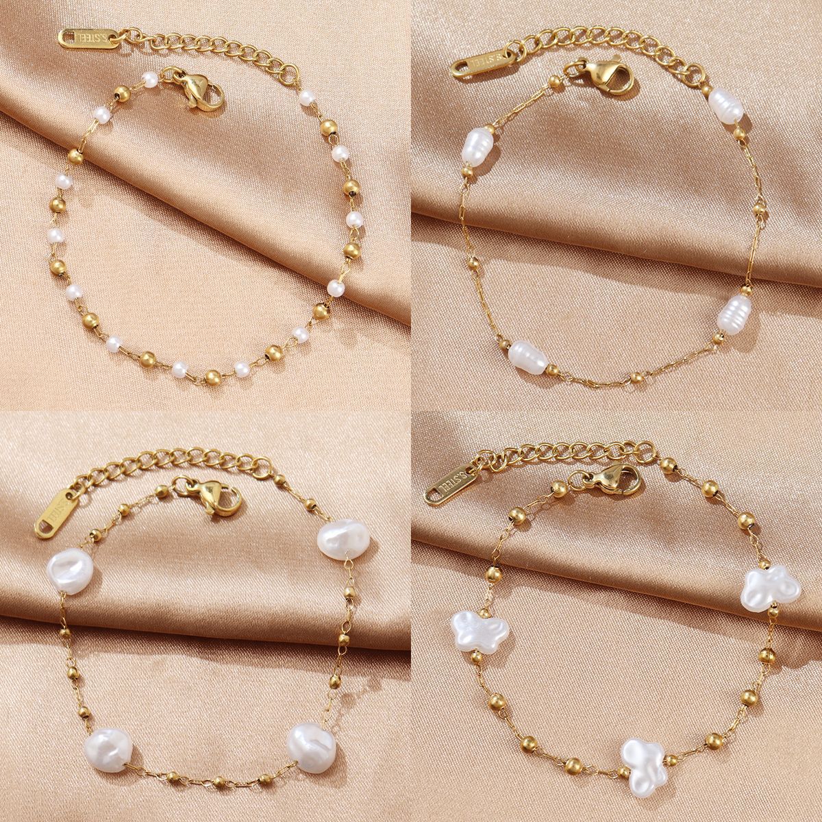 Fashionable and Simple Pearl Bracelet for Women, Versatile Stainless Steel Beaded Chain Bracelet Jewelry Wholesale
