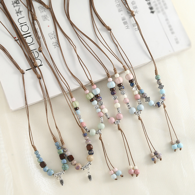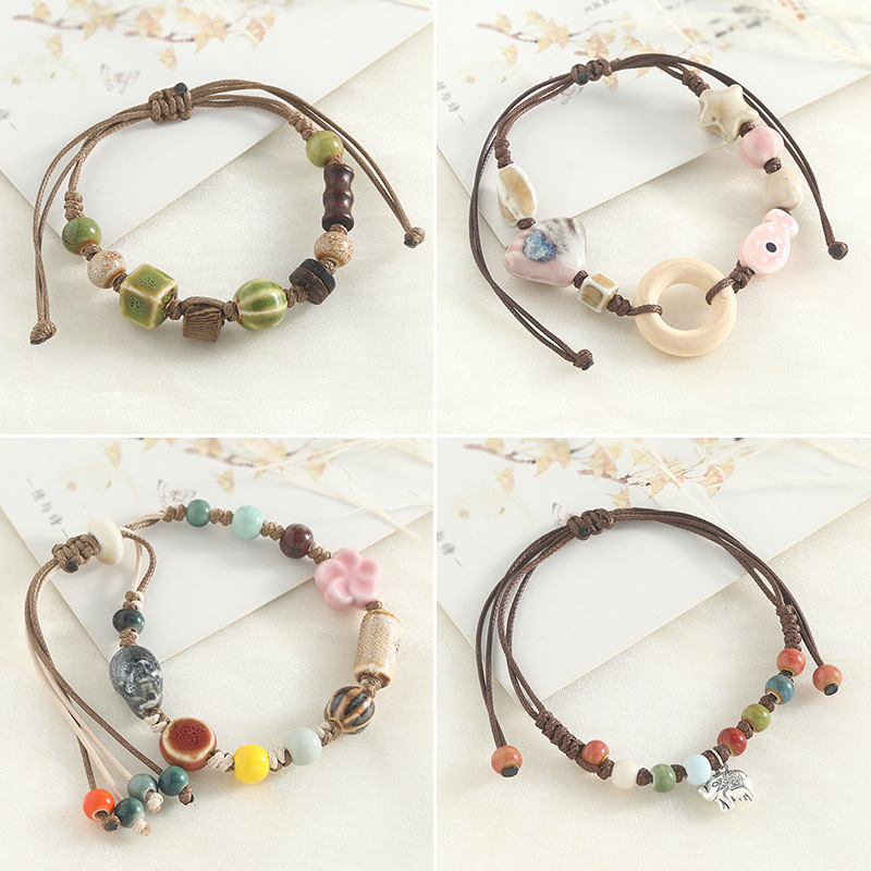 Jingdezhen Ceramic Bracelet Jewelry Niche Design Retro Ethnic Style Beaded Bracelet Student Braided Bracelet Niche