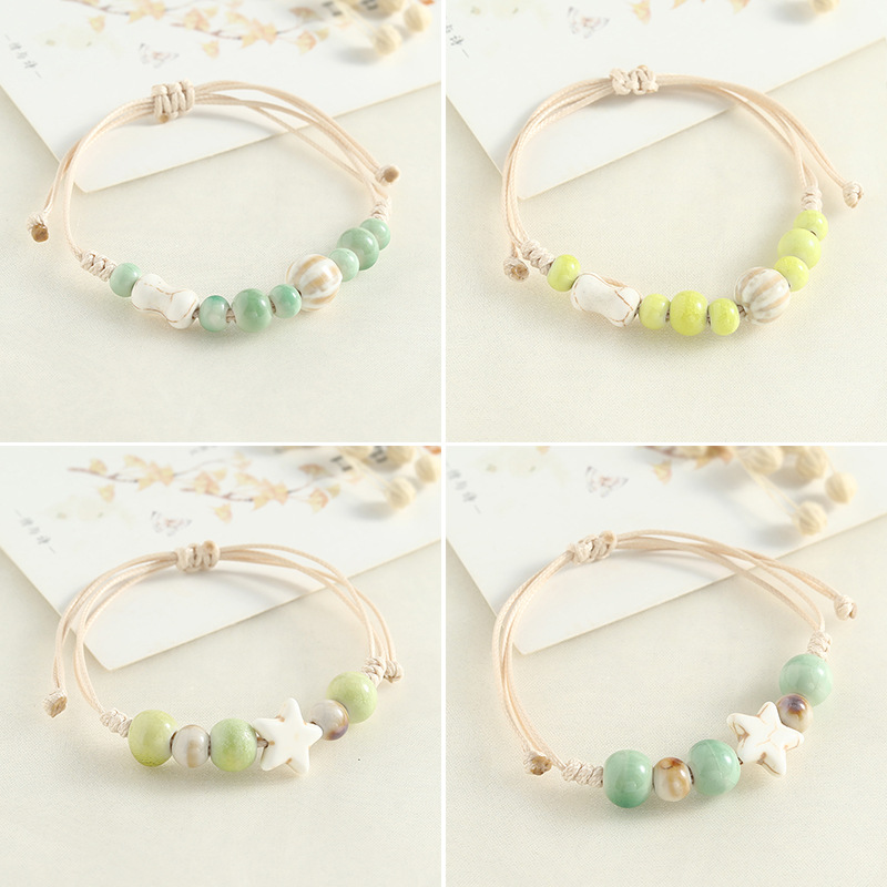 New Chinese Style Star Jingdezhen Ceramic Bracelet for Girls, Beaded Niche Forest Style Ceramic Bracelet, Light Luxury Student Wholesale