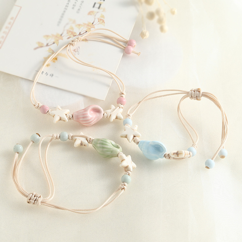New Jingdezhen Ceramic Bracelet for Girls, Small Fresh Conch Porcelain Bead Bracelet, Hand-Woven Niche Beaded Bracelet