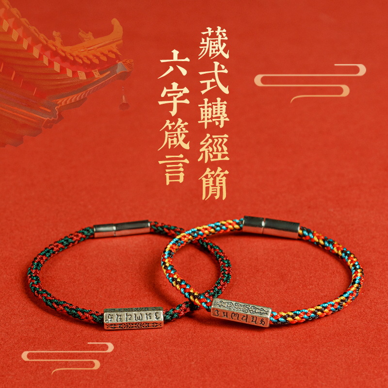 Red rope bracelet female birth year handmade braided rope red rope male six words motto 925 silver bracelet couple jewelry