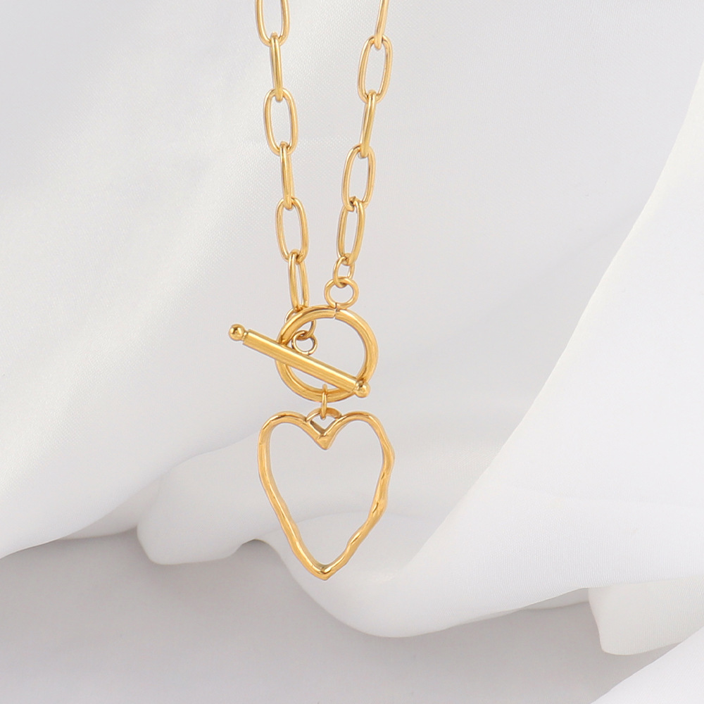 Cross-border stainless steel love pendant necklace fashion simple 18K gold plated heart-shaped OTbuckle necklace jewelry wholesale