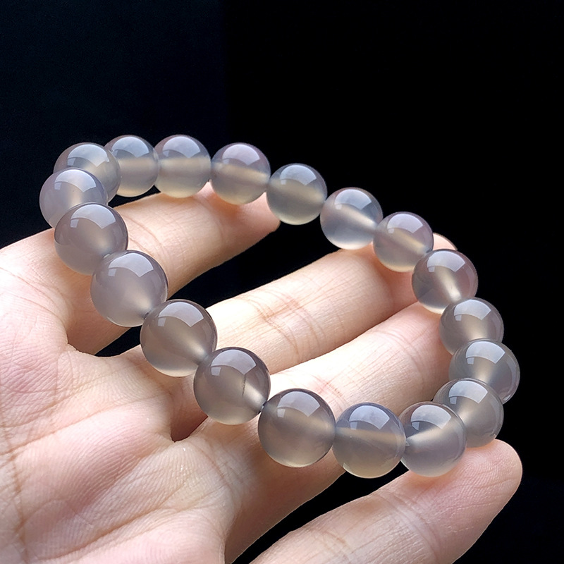 Natural gray agate round bead bracelet single circle chalcedony bracelet for men and women beaded jewelry gift in stock wholesale